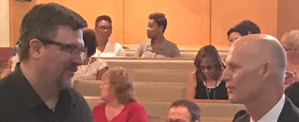 I didn’t, however, expect Governor Rick Scott to show up. We’d heard it was possible, but didn’t know for sure. Governor Scott was in town to attend several funerals of the victims, and wanted to attend a worship service in the community. He chose First Church, and we are honored that he did.